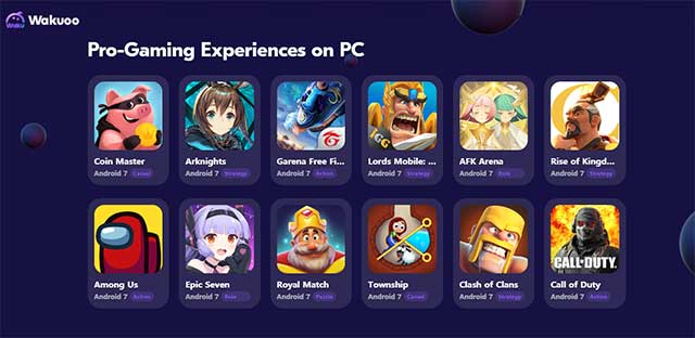 Wakuoo là một nền tảng trò chơi hoàn toàn mới, cho phép bạn chơi các trò chơi di động trên PC. Phần mềm này đi kèm với nhiều phiên bản Android (Android 7 và Android 9 được triển khai tự động) và hoàn toàn tương thích với các thiết bị Intel và AMD.
