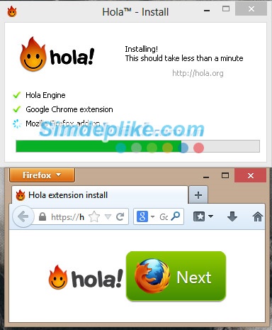 Khi cài đặt, Hola Accelerator and Unblocker sẽ cài đặt tiện ích mở rộng (add-on) Hola! vào các trình duyệt trên máy tính của bạn. Nhấn Next như trong hình để đồng ý cài đặt.